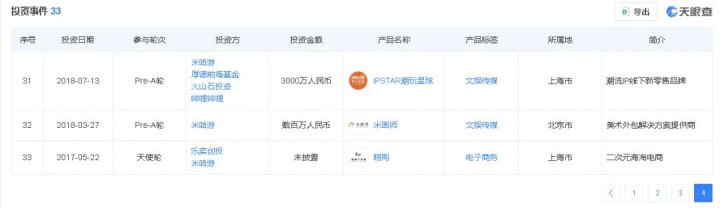 比如在2018年,米哈游曾以约3000万元的总和领投了艾漫动漫。艾漫是一家耕作于2013年的IP养殖品开发商,旗下领有《全职高手》《火影忍者》《进攻的巨东谈主》等多个国表里知名IP授权;除此以外,艾漫还领有顽强的线下零卖收罗,子品牌IPSTAR | 潮玩星球在世界领有约100家门店和主题餐厅。