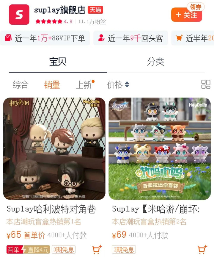 比拟于手办、三坑,盲盒的入坑门槛相对较低,但复购率却很强。通过Suplay,米哈游可能也在试图让游戏附近打破宅圈,以更轻细的姿态在大家层面普及。