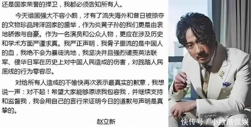 压力之下,赵立新于4月3日凌晨发布谈歉声明,将不当言论痛恨于“抒发歧义”,宣称“内容里流着中国血”。
